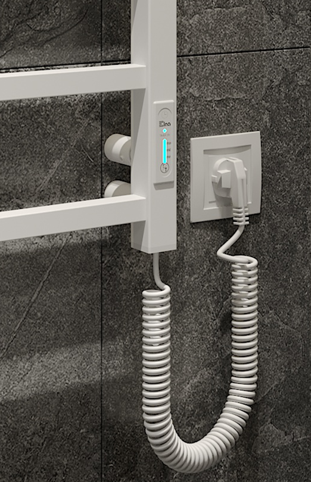 Grzejnik łazienkowy jest całkiem elektryczny, bardzo wygodny w korzystaniu, nie jest wodny, nie potrzebuje podłączenia do systemu centralnego ogrzewania. Ten grzejnik można podłączyć w jakimkolwiek miejscu, gdzie jest dostęp do gniazdka elektrycznego. Urządzenie jest z suchym kablem w środku i nie potrzebuje żadnych dodatkowych płynów, warto tylko podłączyć go do prądu i działa! Nagrzewa się do maksymalnej temperatury w ciągu kilku minut. Jest to niezwykle wygodne, gdy zależy na szybkim wysuszeniu prania lub podgrzaniu ręcznika dla przyjemnego wycierania się po wyjściu z kąpieli.Przewód zasilający można podłączyć do grzejnika samodzielnie z lewej lub prawej strony na życzenie, idealnie dopasowując urządzenie do miejsca rozmieszczenia gniazdka elektrycznego w łazience. Co więcej, jeżeli łazienka jest na etapie remontu to w zestawie od razu są wszystkie niezbędne detale do ukrytego montażu podtynkowego, czyli bez widocznego na zewnątrz przewodu zasilającego. Jest to dobre rozwiązanie dla stworzenia minimalistycznego wnętrza i jeszcze bardziej bezpiecznego korzystania z urządzenia elektrycznego w pomieszczeniu z wysokim poziomem wilgotności.Grzejnik został wyposażony w sterownik, który pozwala regulować temperaturę urządzenia w trzech trybach temperaturowych (45°- 55°- 65°C) oraz posiada jako opcję dodatkową timer 3h. Po 3 godzinach pracy w tym trybie grzejnik wyłącza się samodzielnie. Jest energooszczędny, pobiera bardzo mało prądu. Zaoszczędzi zużycie prądu do 70% miesięcznie.