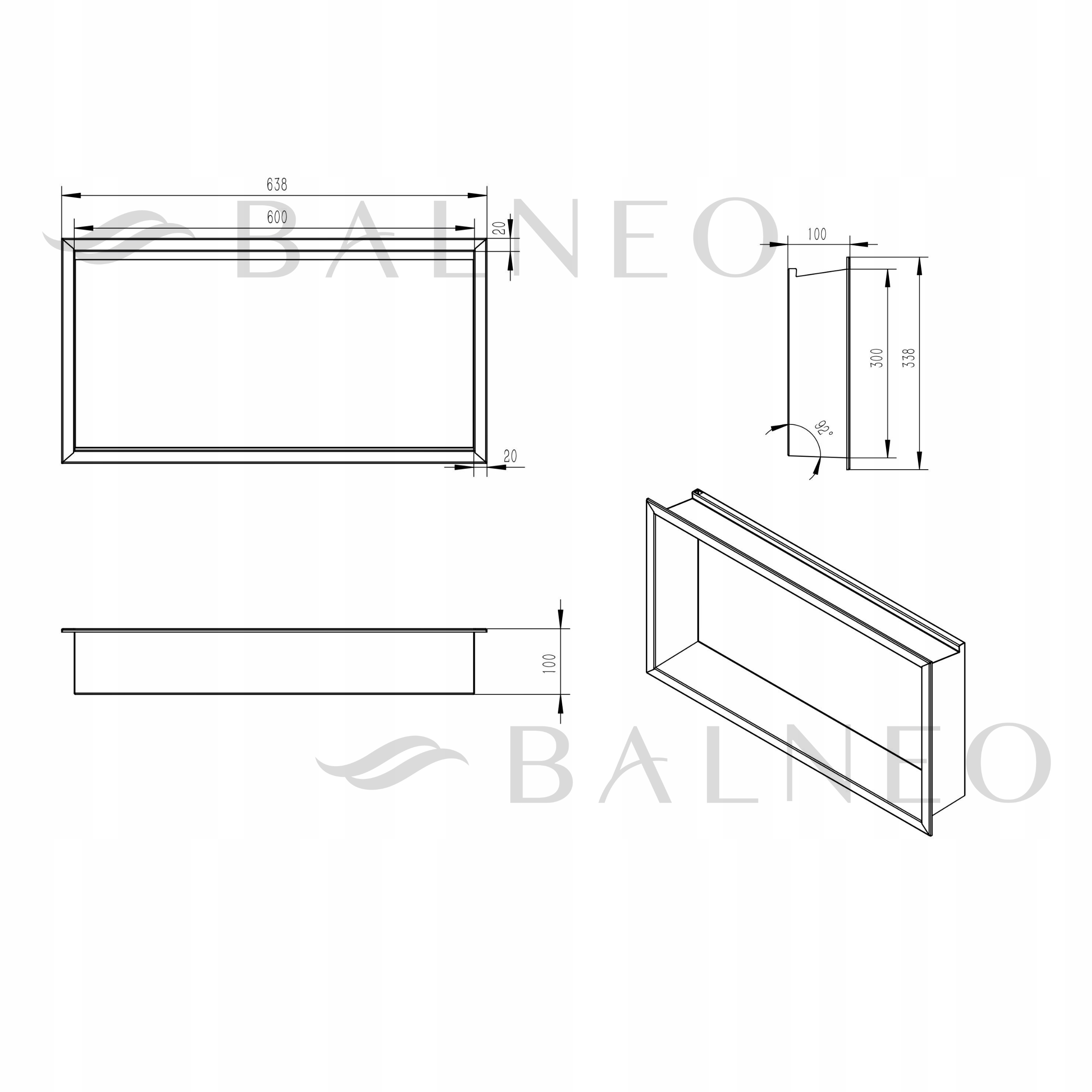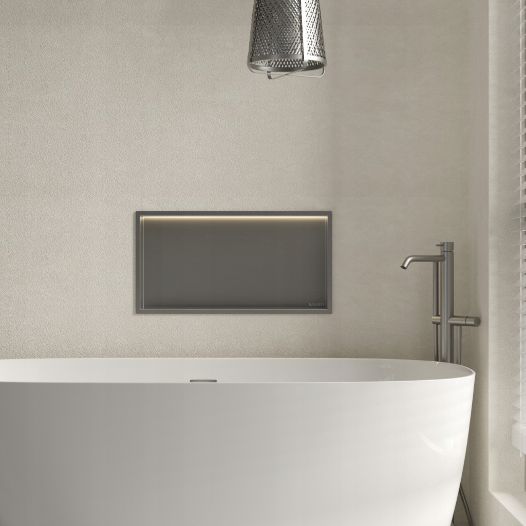 BALNEO PÓŁKA WNĘKOWA Z OŚWIETLENIEM LED 30x60 cm Gun Metal WALL-BOX ONE LED