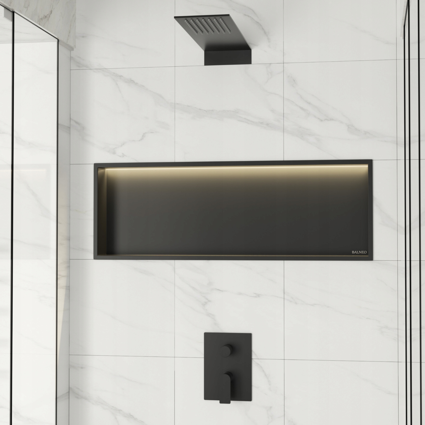 BALNEO PÓŁKA WNĘKOWA Z OŚWIETLENIEM LED 90x30x10 cm CZARNA WALL-BOX ONE LED