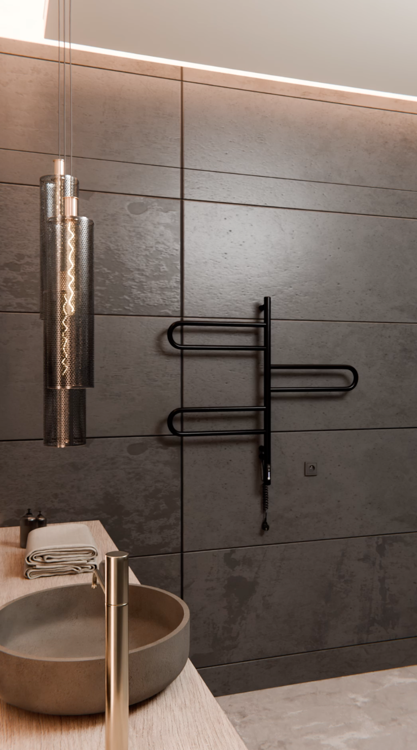 Elektryczny grzejnik łazienkowy Fluger ze stali niskowęglowej ma 3 ruchome przęsła, każde z których obraca się o 180° niezależnie od drugiego.Jest to grzejnik całkiem elektryczny, bardzo wygodny w korzystaniu, nie jest wodny, nie potrzebuje podłączenia do systemu centralnego ogrzewania. Ten grzejnik można podłączyć w jakimkolwiek miejscu, gdzie jest dostęp do gniazdka elektrycznego. Urządzenie jest z suchym kablem w środku i nie potrzebuje żadnych dodatkowych płynów, warto tylko podłączyć go do prądu i działa! Nagrzewa się do maksymalnej temperatury w ciągu kilku minut. Jest to niezwykle wygodne, gdy zależy na szybkim wysuszeniu prania lub podgrzaniu ręcznika dla przyjemnego wycierania się po wyjściu z kąpieli.Jeżeli łazienka jest na etapie remontu jest możliwość ukrytego systemu montowania podtynkowego, bez widocznego na zewnątrz przewodu zasilającego. Idealne rozwiązanie dla minimalistycznego wnętrza i bezpiecznego korzystania z urządzenia elektrycznego.Grzejnik został wyposażony w sterownik, który pozwala regulować temperaturę urządzenia w trzech trybach temperaturowych (45°- 55°- 65°C) oraz posiada jako opcję dodatkową timer 3h. Po 3 godzinach pracy w tym trybie grzejnik wyłącza się samodzielnie. Jest energooszczędny, pobiera bardzo mało prądu. Zaoszczędzi zużycie prądu do 70% miesięcznie.