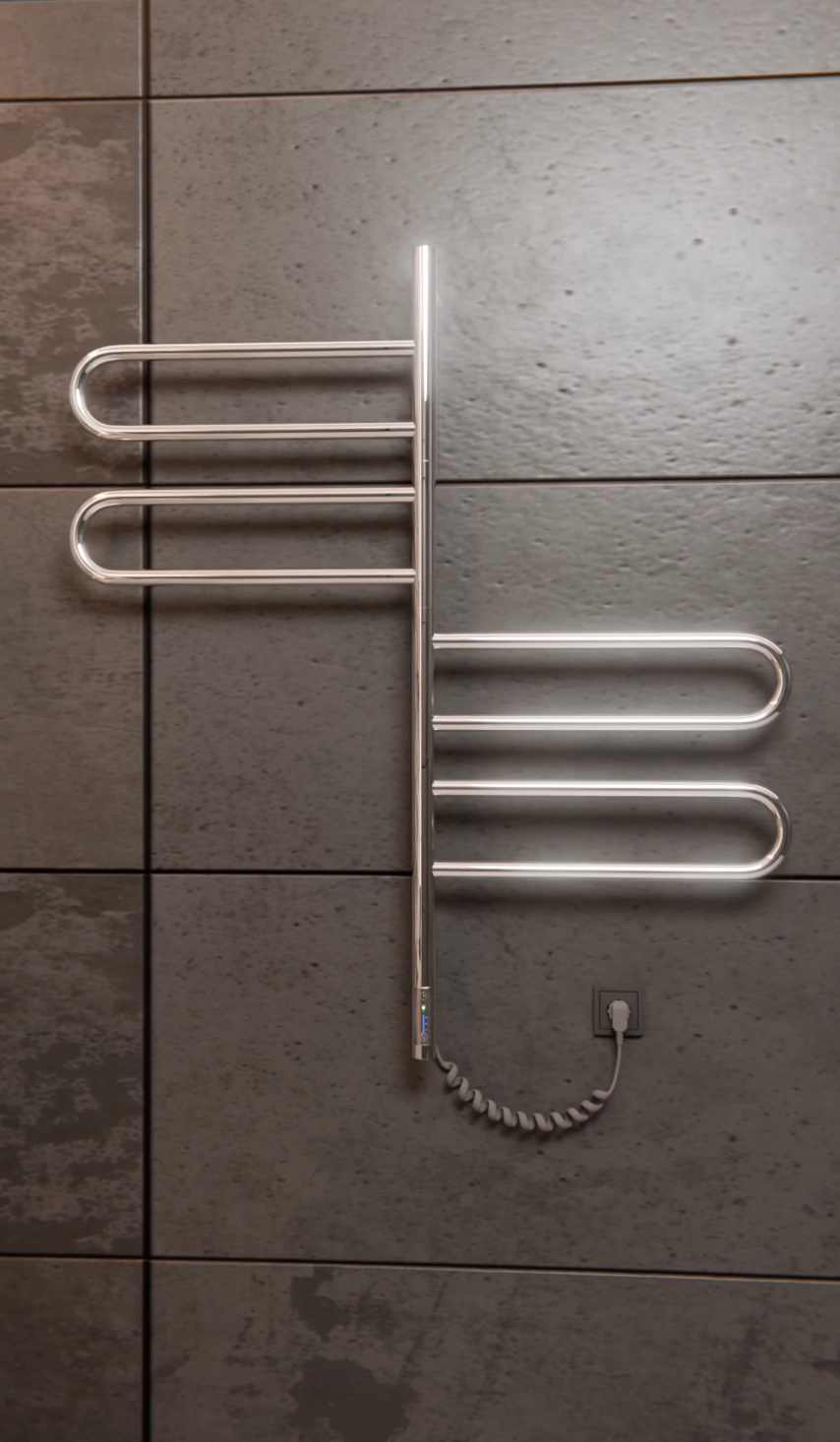 Elektryczny grzejnik łazienkowy Fluger ze stali nierdzewnej ma 4 ruchome przęsła, każde z których obraca się o 180° niezależnie od drugiego.Jest to grzejnik całkiem elektryczny, bardzo wygodny w korzystaniu, nie jest wodny, nie potrzebuje podłączenia do systemu centralnego ogrzewania. Ten grzejnik można podłączyć w jakimkolwiek miejscu, gdzie jest dostęp do gniazdka elektrycznego. Urządzenie jest z suchym kablem w środku i nie potrzebuje żadnych dodatkowych płynów, warto tylko podłączyć go do prądu i działa! Nagrzewa się do maksymalnej temperatury w ciągu kilku minut. Jest to niezwykle wygodne, gdy zależy na szybkim wysuszeniu prania lub podgrzaniu ręcznika dla przyjemnego wycierania się po wyjściu z kąpieli.Jeżeli łazienka jest na etapie remontu jest możliwość ukrytego systemu montowania podtynkowego, bez widocznego na zewnątrz przewodu zasilającego. Idealne rozwiązanie dla minimalistycznego wnętrza i bezpiecznego korzystania z urządzenia elektrycznego.Grzejnik został wyposażony w sterownik, który pozwala regulować temperaturę urządzenia w trzech trybach temperaturowych (45°- 55°- 65°C) oraz posiada jako opcję dodatkową timer 3h. Po 3 godzinach pracy w tym trybie grzejnik wyłącza się samodzielnie. Jest energooszczędny, pobiera bardzo mało prądu. Zaoszczędzi zużycie prądu do 70% miesięcznie.