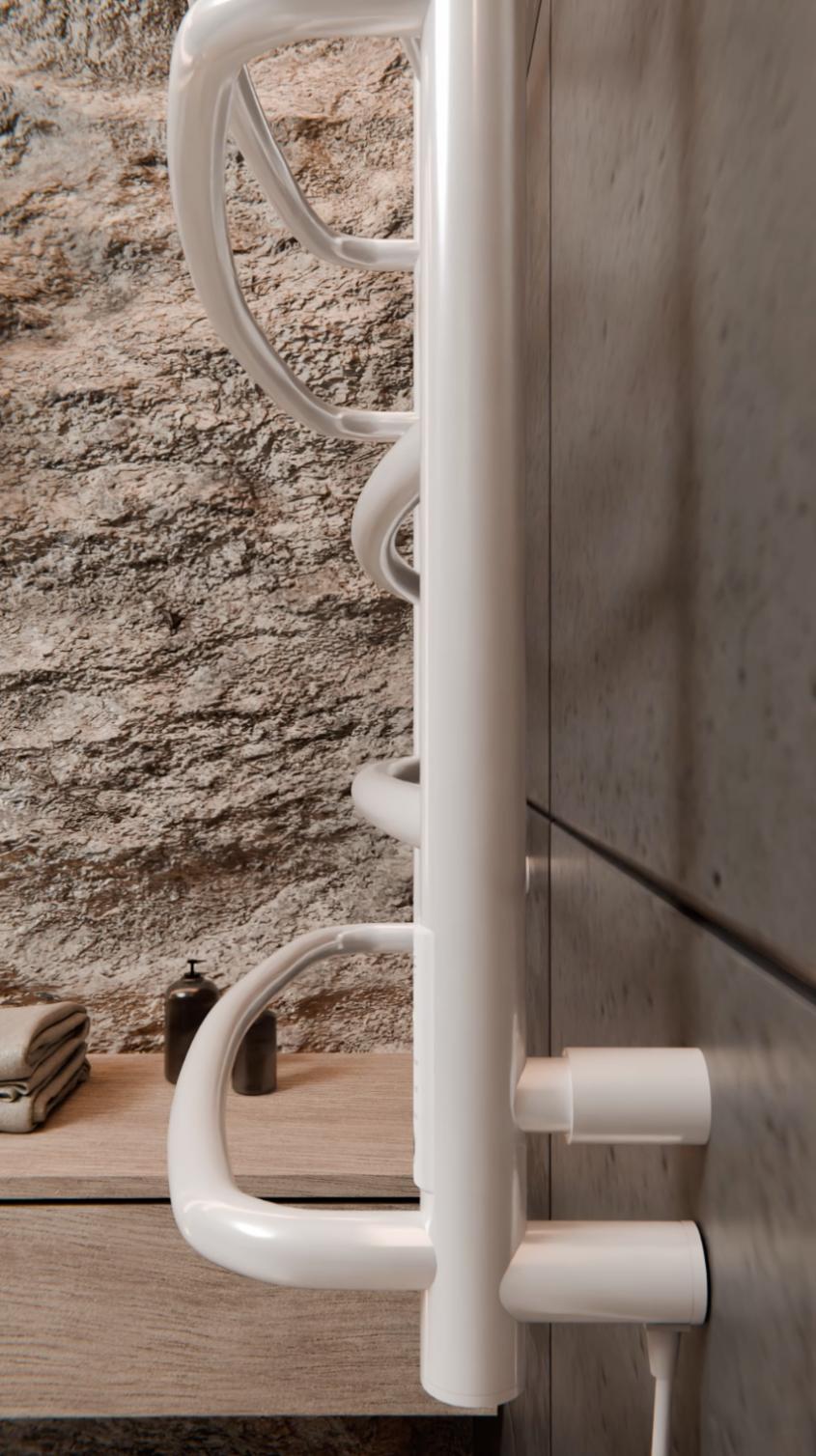 Grzejnik łazienkowy Kaskada z półką jest całkiem elektryczny, bardzo wygodny w korzystaniu, nie jest wodny, nie potrzebuje podłączenia do systemu centralnego ogrzewania. Ten grzejnik można podłączyć w jakimkolwiek miejscu, gdzie jest dostęp do gniazdka elektrycznego. Urządzenie jest z suchym kablem w środku i nie potrzebuje żadnych dodatkowych płynów, warto tylko podłączyć go do prądu i działa! Nagrzewa się do maksymalnej temperatury w ciągu kilku minut. Jest to niezwykle wygodne, gdy zależy na szybkim wysuszeniu prania lub podgrzaniu ręcznika dla przyjemnego wycierania się po wyjściu z kąpieli. Półka pozwala na wygodne przechowywanie ręczników.Przewód zasilający można podłączyć do grzejnika samodzielnie z lewej lub prawej strony na życzenie, idealnie dopasowując urządzenie do miejsca rozmieszczenia gniazdka elektrycznego w łazience. Co więcej, jeżeli łazienka jest na etapie remontu to w zestawie od razu są wszystkie niezbędne detale do ukrytego montażu podtynkowego, czyli bez widocznego na zewnątrz przewodu zasilającego. Jest to dobre rozwiązanie dla stworzenia minimalistycznego wnętrza i jeszcze bardziej bezpiecznego korzystania z urządzenia elektrycznego w pomieszczeniu z wysokim poziomem wilgotności.Grzejnik został wyposażony w sterownik, który pozwala regulować temperaturę urządzenia w trzech trybach temperaturowych (45°- 55°- 65°C) oraz posiada jako opcję dodatkową timer 3h. Po 3 godzinach pracy w tym trybie grzejnik wyłącza się samodzielnie. Jest energooszczędny, pobiera bardzo mało prądu. Zaoszczędzi zużycie prądu do 70% miesięcznie.