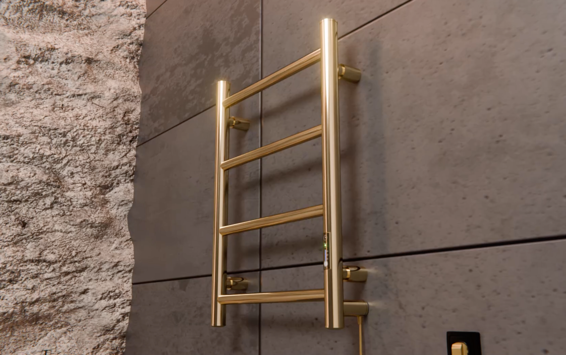 Grzejnik łazienkowy jest całkiem elektryczny, bardzo wygodny w korzystaniu, nie jest wodny, nie potrzebuje podłączenia do systemu centralnego ogrzewania. Ten grzejnik można podłączyć w jakimkolwiek miejscu, gdzie jest dostęp do gniazdka elektrycznego. Urządzenie jest z suchym kablem w środku i nie potrzebuje żadnych dodatkowych płynów, warto tylko podłączyć go do prądu i działa! Nagrzewa się do maksymalnej temperatury w ciągu kilku minut. Jest to niezwykle wygodne, gdy zależy na szybkim wysuszeniu prania lub podgrzaniu ręcznika dla przyjemnego wycierania się po wyjściu z kąpieli.Przewód zasilający można podłączyć do grzejnika samodzielnie z lewej lub prawej strony na życzenie, idealnie dopasowując urządzenie do miejsca rozmieszczenia gniazdka elektrycznego w łazience. Co więcej, jeżeli łazienka jest na etapie remontu to w zestawie od razu są wszystkie niezbędne detale do ukrytego montażu podtynkowego, czyli bez widocznego na zewnątrz przewodu zasilającego. Jest to dobre rozwiązanie dla stworzenia minimalistycznego wnętrza i jeszcze bardziej bezpiecznego korzystania z urządzenia elektrycznego w pomieszczeniu z wysokim poziomem wilgotności.Grzejnik został wyposażony w sterownik, który pozwala regulować temperaturę urządzenia w trzech trybach temperaturowych (45°- 55°- 65°C) oraz posiada jako opcję dodatkową timer 3h. Po 3 godzinach pracy w tym trybie grzejnik wyłącza się samodzielnie. Jest energooszczędny, pobiera bardzo mało prądu. Zaoszczędzi zużycie prądu do 70% miesięcznie.Suszarka łazienkowa elektryczna Ladder 4 Gold jest wykonana ze stali nierdzewnej, a jej powierzchnia złocona metodą PVD. Idealnie odpolerowana złota powłoka zachowuje swoje charakterystyki techniczne przez dziesiątki lat. Lustrzana powierzchnia urządzenia o wyszukanym złotym odcieniu podkreśli luksusową atmosferę wnętrza łazienki. Złoty odcień grzejnika łazienkowego marki Elna-Service idealnie pasuje do złotych baterii Omnires i Grohe.