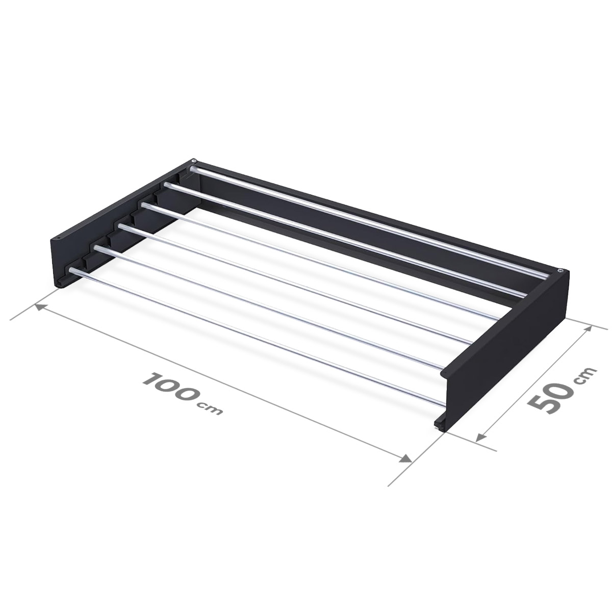 Mechanizm konstrukcyjny ułatwia rozkładanie suszarki: panele rozkładają się na boki, wysuwając 6 mocnych prętów, które są w stanie utrzymać ciężar do 25 kg.