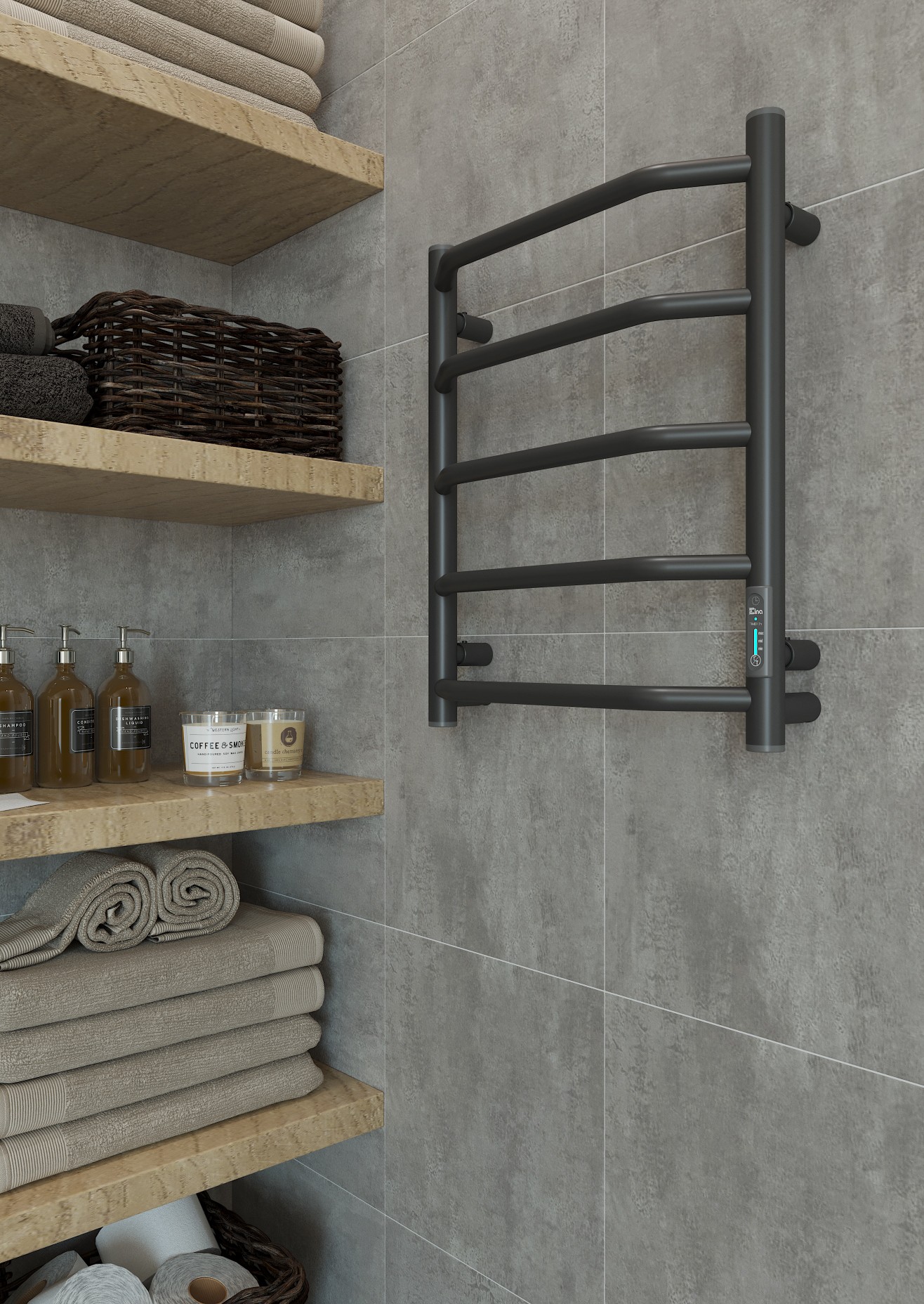 Grzejnik łazienkowy jest całkiem elektryczny, bardzo wygodny w korzystaniu, nie jest wodny, nie potrzebuje podłączenia do systemu centralnego ogrzewania. Ten grzejnik można podłączyć w jakimkolwiek miejscu, gdzie jest dostęp do gniazdka elektrycznego. Urządzenie jest z suchym kablem w środku i nie potrzebuje żadnych dodatkowych płynów, warto tylko podłączyć go do prądu i działa! Nagrzewa się do maksymalnej temperatury w ciągu kilku minut. Jest to niezwykle wygodne, gdy zależy na szybkim wysuszeniu prania lub podgrzaniu ręcznika dla przyjemnego wycierania się po wyjściu z kąpieli.Przewód zasilający można podłączyć do grzejnika samodzielnie z lewej lub prawej strony na życzenie, idealnie dopasowując urządzenie do miejsca rozmieszczenia gniazdka elektrycznego w łazience. Co więcej, jeżeli łazienka jest na etapie remontu to w zestawie od razu są wszystkie niezbędne detale do ukrytego montażu podtynkowego, czyli bez widocznego na zewnątrz przewodu zasilającego. Jest to dobre rozwiązanie dla stworzenia minimalistycznego wnętrza i jeszcze bardziej bezpiecznego korzystania z urządzenia elektrycznego w pomieszczeniu z wysokim poziomem wilgotności.Grzejnik został wyposażony w sterownik, który pozwala regulować temperaturę urządzenia w trzech trybach temperaturowych (45°- 55°- 65°C) oraz posiada jako opcję dodatkową timer 3h. Po 3 godzinach pracy w tym trybie grzejnik wyłącza się samodzielnie. Jest energooszczędny, pobiera bardzo mało prądu. Zaoszczędzi zużycie prądu do 70% miesięcznie.