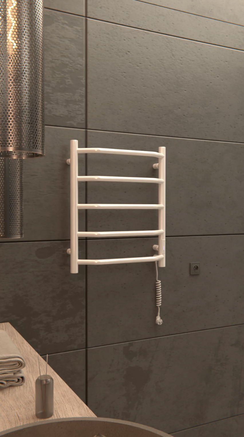Grzejnik łazienkowy jest całkiem elektryczny, bardzo wygodny w korzystaniu, nie jest wodny, nie potrzebuje podłączenia do systemu centralnego ogrzewania. Ten grzejnik można podłączyć w jakimkolwiek miejscu, gdzie jest dostęp do gniazdka elektrycznego. Urządzenie jest z suchym kablem w środku i nie potrzebuje żadnych dodatkowych płynów, warto tylko podłączyć go do prądu i działa! Nagrzewa się do maksymalnej temperatury w ciągu kilku minut. Jest to niezwykle wygodne, gdy zależy na szybkim wysuszeniu prania lub podgrzaniu ręcznika dla przyjemnego wycierania się po wyjściu z kąpieli.Przewód zasilający można podłączyć do grzejnika samodzielnie z lewej lub prawej strony na życzenie, idealnie dopasowując urządzenie do miejsca rozmieszczenia gniazdka elektrycznego w łazience. Co więcej, jeżeli łazienka jest na etapie remontu to w zestawie od razu są wszystkie niezbędne detale do ukrytego montażu podtynkowego, czyli bez widocznego na zewnątrz przewodu zasilającego. Jest to dobre rozwiązanie dla stworzenia minimalistycznego wnętrza i jeszcze bardziej bezpiecznego korzystania z urządzenia elektrycznego w pomieszczeniu z wysokim poziomem wilgotności.Grzejnik został wyposażony w sterownik, który pozwala regulować temperaturę urządzenia w trzech trybach temperaturowych (45°- 55°- 65°C) oraz posiada jako opcję dodatkową timer 3h. Po 3 godzinach pracy w tym trybie grzejnik wyłącza się samodzielnie. Jest energooszczędny, pobiera bardzo mało prądu. Zaoszczędzi zużycie prądu do 70% miesięcznie.