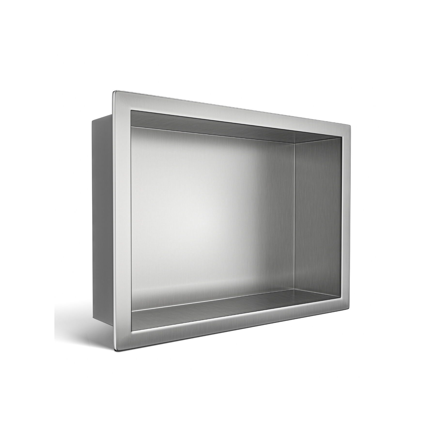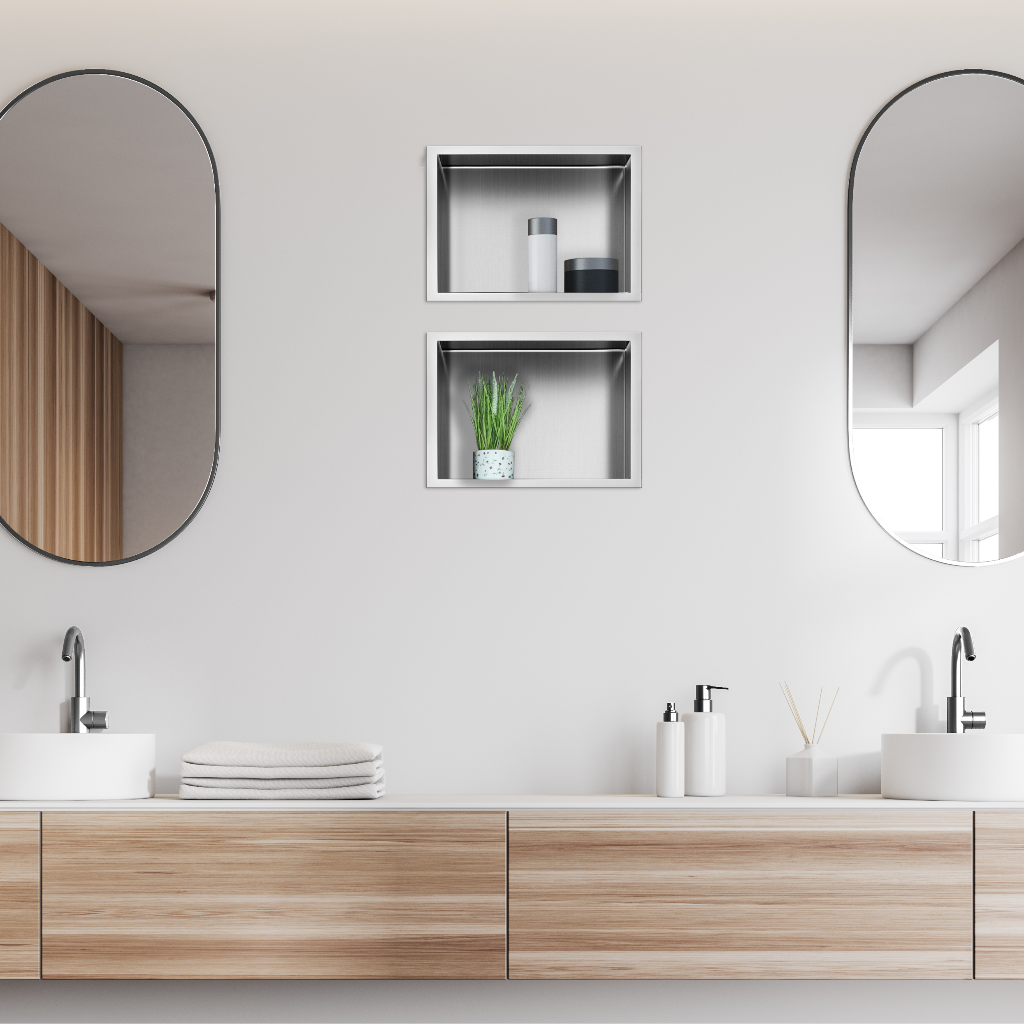 Półki wnękowe WALL-BOX ONE pozwalają uporządkować przestrzeń w łazience i nadają jej nowoczesnego designu. Na łatwo dostępnych półkach można ustawić kosmetyki, perfumy a w kabinie prysznicowej - szampony, żele i inne artykuły kąpielowe.