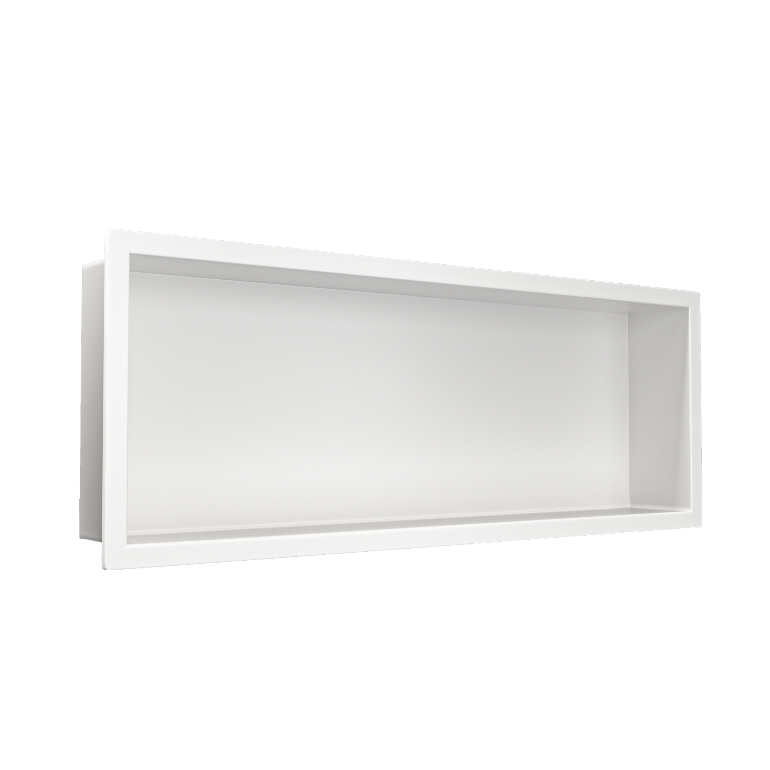 Półki wnękowe WALL-BOX ONE pozwalają uporządkować przestrzeń w łazience i nadają jej nowoczesnego designu. Na łatwo dostępnych półkach można ustawić kosmetyki, perfumy a w kabinie prysznicowej - szampony, żele i inne artykuły kąpielowe.