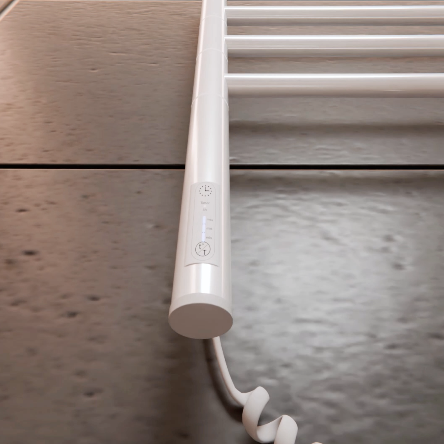 Elektryczny grzejnik łazienkowy Wertykal ze stali niskowęglowej ma 6 ruchomych przęseł, każde z których obraca się o 180° niezależnie od drugiego.Jest to grzejnik całkiem elektryczny, bardzo wygodny w korzystaniu, nie jest wodny, nie potrzebuje podłączenia do systemu centralnego ogrzewania. Ten grzejnik można podłączyć w jakimkolwiek miejscu, gdzie jest dostęp do gniazdka elektrycznego. Urządzenie jest z suchym kablem w środku i nie potrzebuje żadnych dodatkowych płynów, warto tylko podłączyć go do prądu i działa! Nagrzewa się do maksymalnej temperatury w ciągu kilku minut. Jest to niezwykle wygodne, gdy zależy na szybkim wysuszeniu prania lub podgrzaniu ręcznika dla przyjemnego wycierania się po wyjściu z kąpieli.Jeżeli łazienka jest na etapie remontu jest możliwość ukrytego systemu montowania podtynkowego, bez widocznego na zewnątrz przewodu zasilającego. Idealne rozwiązanie dla minimalistycznego wnętrza i bezpiecznego korzystania z urządzenia elektrycznego.Grzejnik został wyposażony w sterownik, który pozwala regulować temperaturę urządzenia w trzech trybach temperaturowych (45°- 55°- 65°C) oraz posiada jako opcję dodatkową timer 3h. Po 3 godzinach pracy w tym trybie grzejnik wyłącza się samodzielnie. Jest energooszczędny, pobiera bardzo mało prądu. Zaoszczędzi zużycie prądu do 70% miesięcznie.