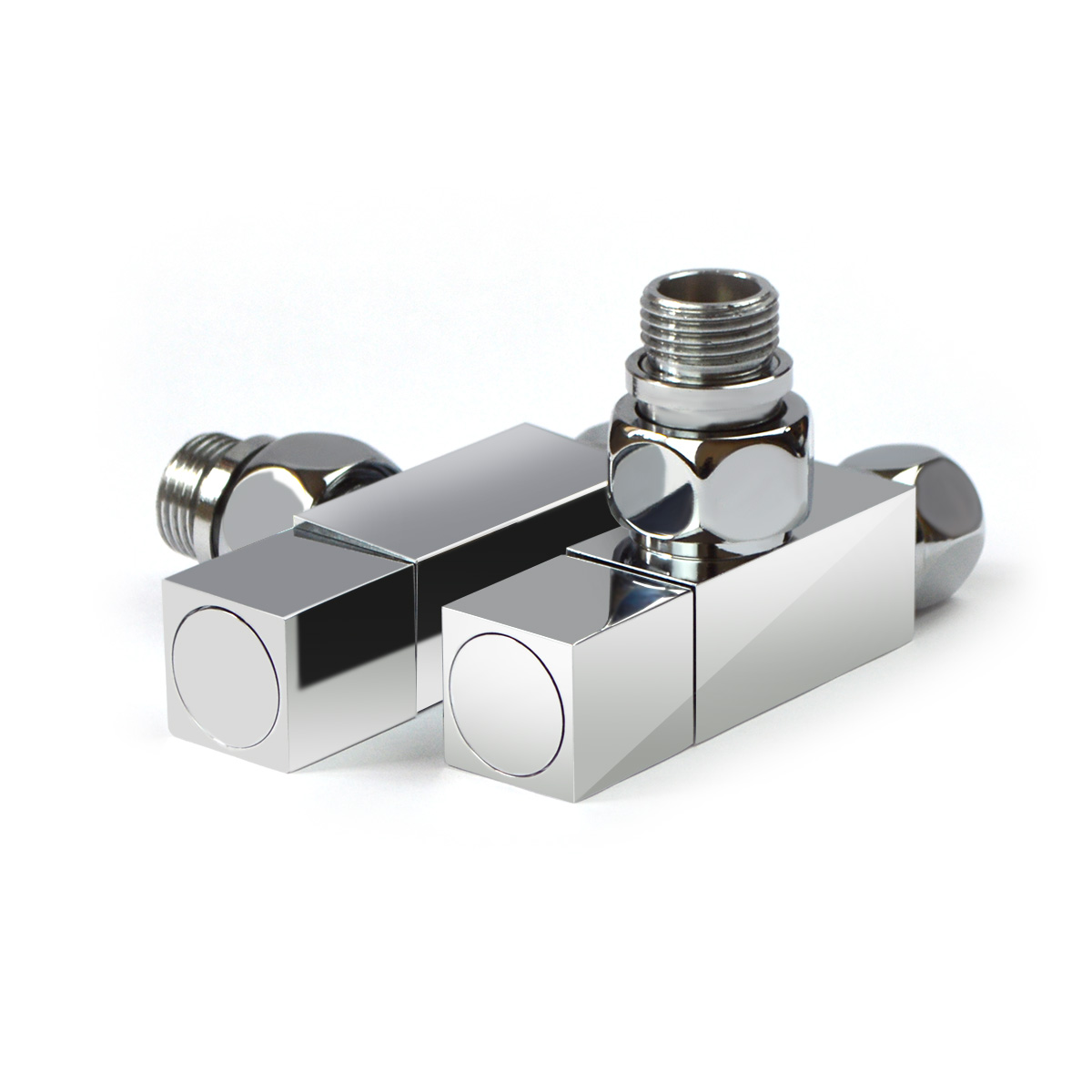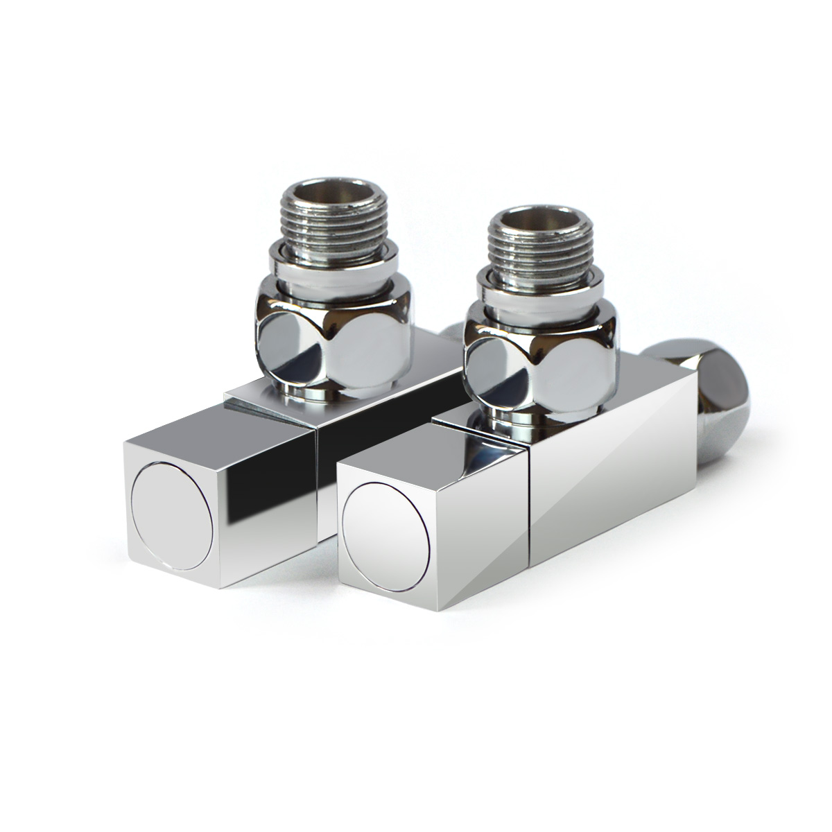 Krany narożne do grzejników łazienkowych Raftec Quadro 1/2"x1/2" Chrom przeznaczone są do podłączania grzejników łazienkowych do systemów grzewczych i płynnej regulacji przepływu czynnika chłodzącego przez nie. Krany można również stosować w rurociągach do systemów wody pitnej i ciepłej wody.