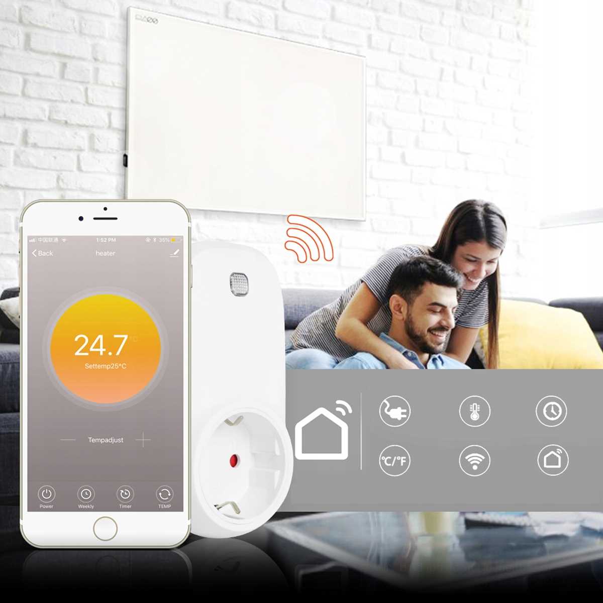 Chcesz z poziomu jednego urządzenia kontrolować grzejnik, panel podczerwieni lub inne urządzenie grzewcze bezpośrednio wpinane do gniazdka? W takim wypadku warto zainwestować w nowoczesny termostat, który posiada szeroki wachlarz możliwości, a przy tym jest intuicyjny w obsłudze poprzez aplikację w smartphonie. Ma elegancki design i jest niewielkich rozmiarów, przez co będzie pasował do różnych pomieszczeń i wystrojów. Sterownik temperatury posiada technologię Wi-Fi o dużym zasięgu, dzięki której można w łatwy sposób kontrolować moc ogrzewania i zaprogramować cykle grzewcze z poziomu aplikacji w telefonie. W ten sposób można zarządzać temperaturą w mieszkaniu z dowolnego miejsca